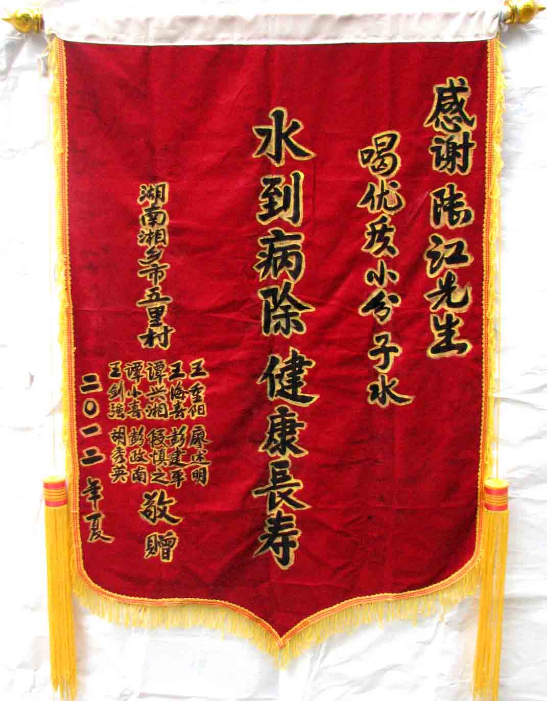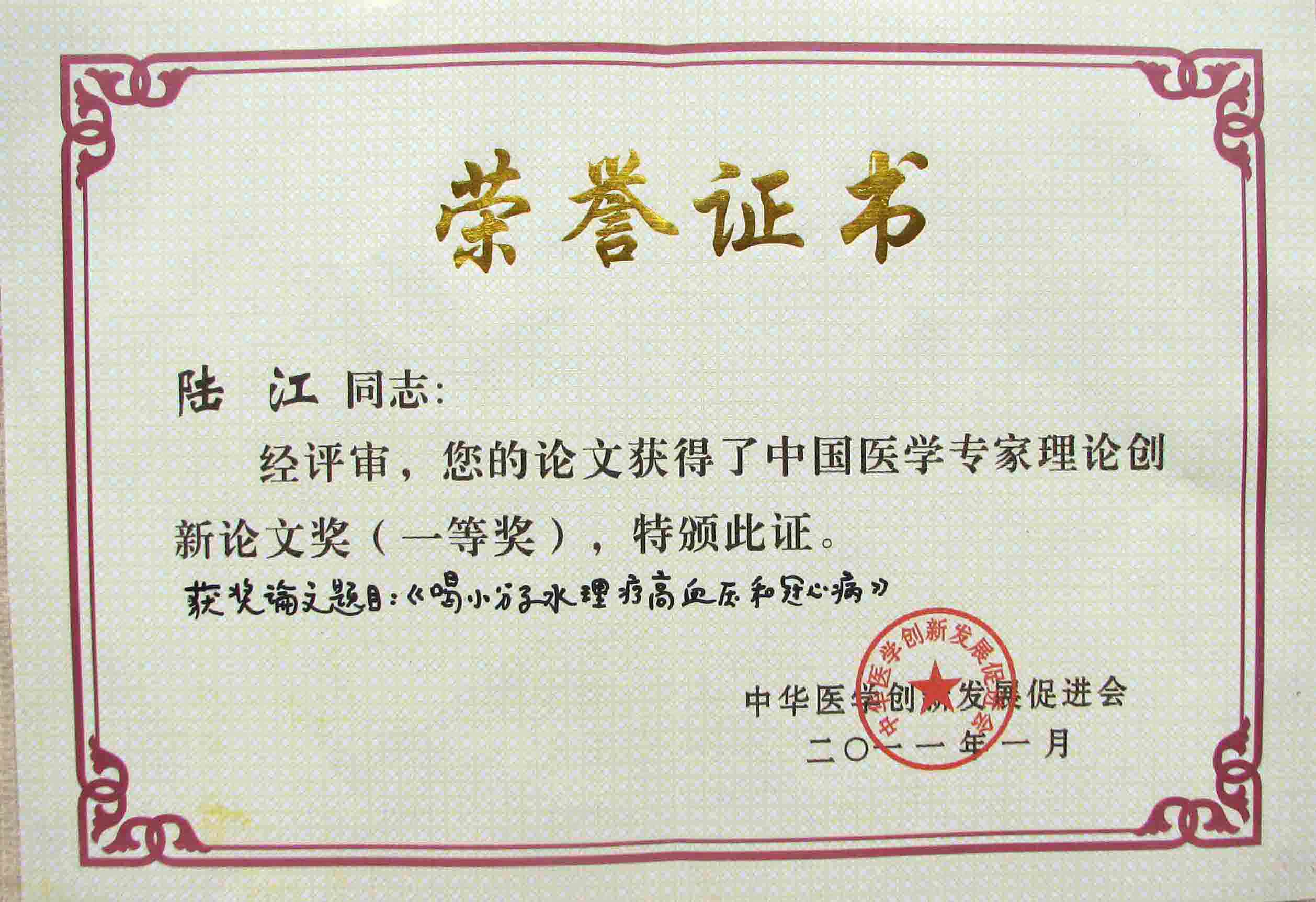 新疆63歲的賀兆生飲用一年,冠心病未愈,他用電話介紹是食堂管理員,問他食量多少?說吃七八分飽,睡前還吃兩袋牛奶,陸 江說我在論文和書中多次批判“吃七八分飽”,關(guān)照患者務(wù)必用“己饑方食”控制主食肉食量,要他把牛奶改在早中餐吃,減少主食肉食量,建議不吃晩餐,晚上只吃一個蘋果,再經(jīng)幾個月補(bǔ)水節(jié)食,治愈了21年的冠心病和肥胖、失眠等病,信中由衷地感激陸 江為再生父母。[13]因為醫(yī)生從未過問他的膳食習(xí)慣,只管開處方藥或手術(shù),父母也不會叫他不吃晩飯。
